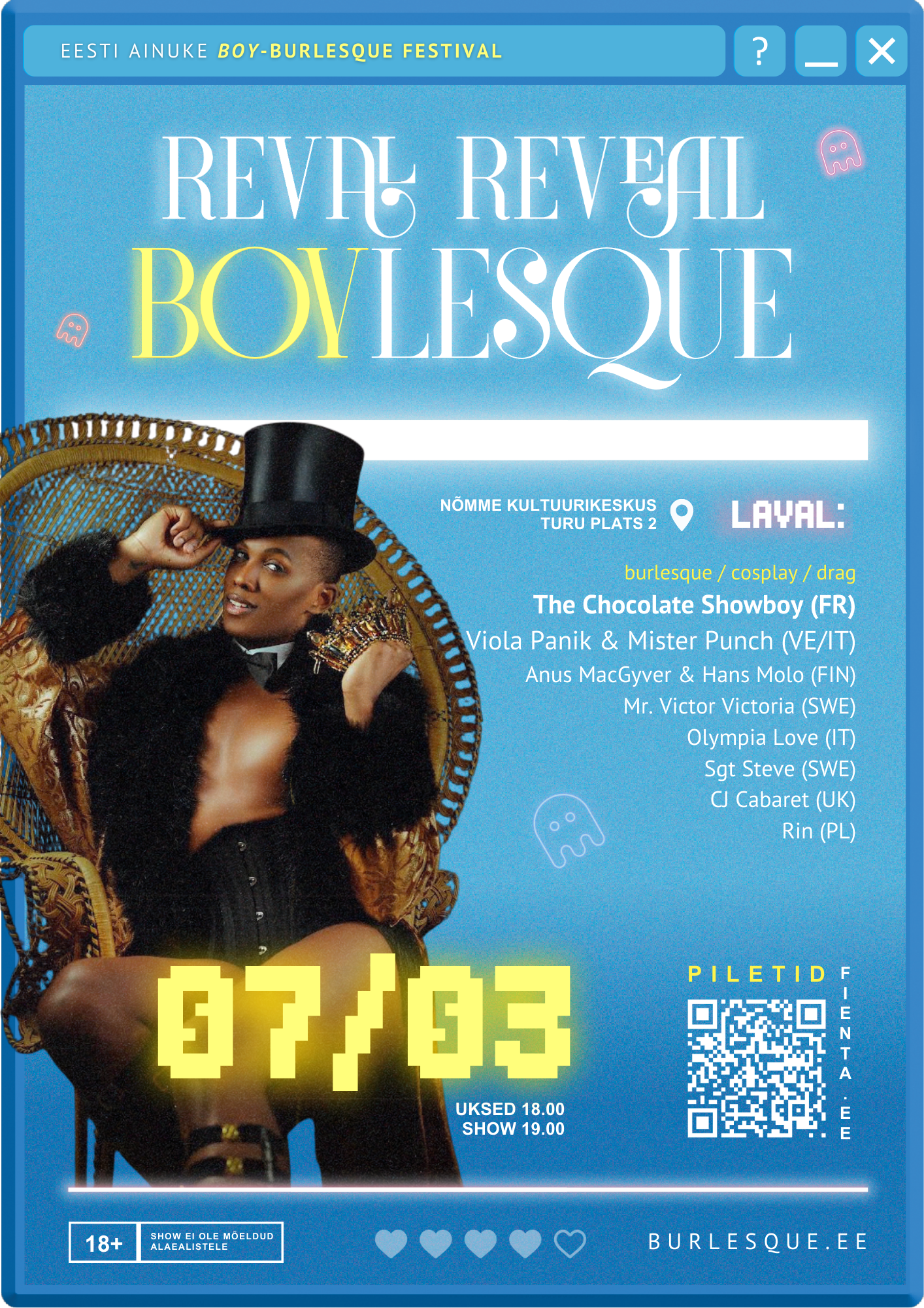 Korraldaja: Reval Reval Burlesque Festival, revalrevealburlesque@gmail.com